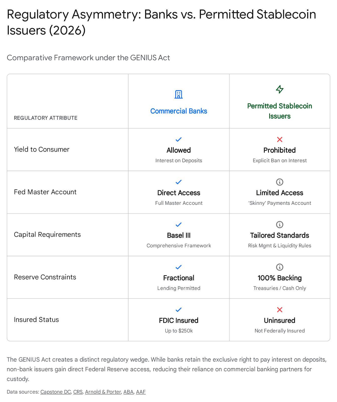 Part of the rationale behind GENIUS is to offer banks some protection against fintechs by allowing banks to charge interest on deposit accounts, something non-bank issuers cannot do.